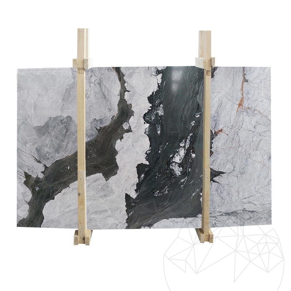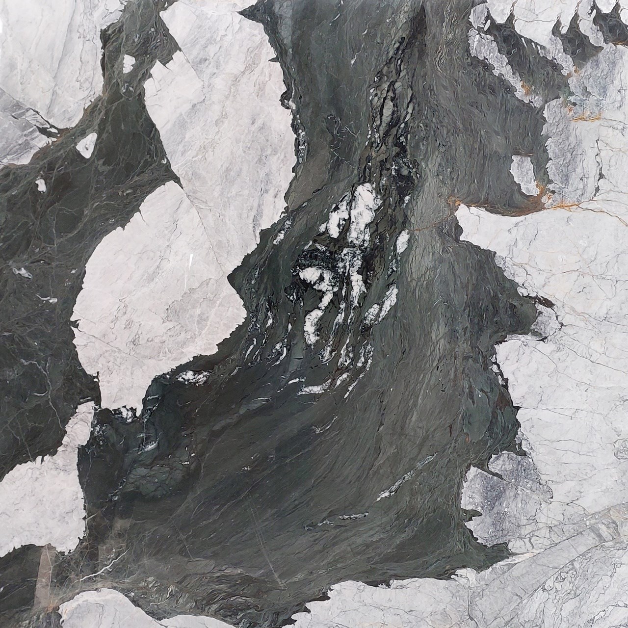 Green Paradiso marble captivates with its unique deep green shades, interspersed with subtle grey veining and golden accents, creating a refined and spectacular visual effect. Polished to a high-gloss finish, this marble slab enhances the stone’s natural beauty, adding brightness and depth to any interior space.