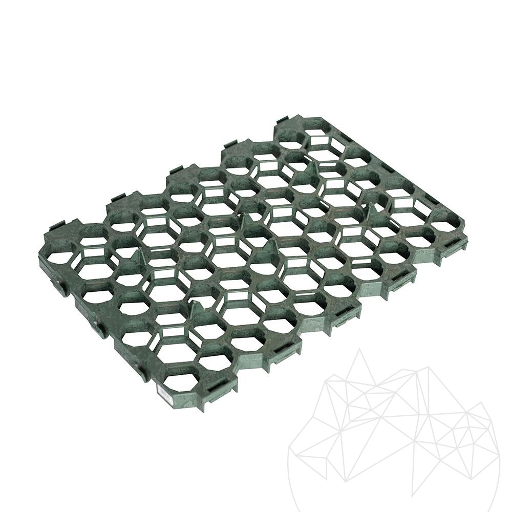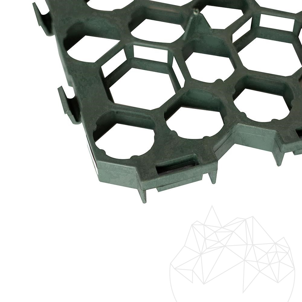 Anwendungsmöglichkeiten: Urbane Grünflächen Private Gärten Parkplätze und Auffahrten Wege und Notzufahrten Paddocks und andere Reitflächen Schwerlast Kiesflächen Eigenschaften und Vorteile von BERA® Grass Fix Eco+: Umweltfreundlicher Rohstoff: im Werk wird Kunststoffmüll aus Haushalten („Gelber Sack“) angeliefert, gewaschen, sortiert, zerkleinert und zu neuem, voll einsatzfähigem Kunststoffgranulat recycelt. Aus diesem werden im Spritzgussverfahren die Wabenmatten hergestellt. Höchste Belastbarkeit der leeren Waben von bis zu 170 t/qm für LKW Befahrung. Wabenstruktur mit Anti-Rutsch-Noppen für sicheres Begehen und Befahren. Ein Sicherheitsverschluss hält die Matten fest zusammen und sorgt für eine stabile Basis für alle befahrenen Bereiche. Bodenanker auf der Unterseite verhindern ein Verschieben der Matten. Komplett wasserdurchlässig, dennoch genügend Restfeuchte für den Rasen. Leicht zuzuschneiden rund um Hindernisse wie Bäume, Hecken oder Zäune. Produziert in der EU unter Einhaltung der Vorgaben von REACH, ISO 9001 und ISO14001.